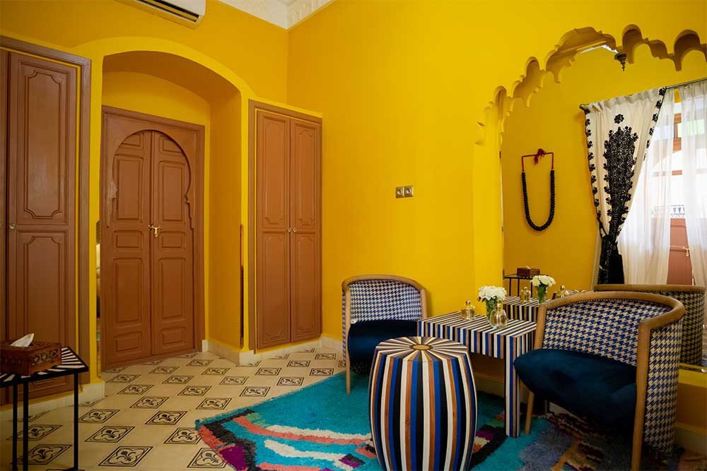 Réservez la Suite Dades au Riad Ksar Al Amal pour une expérience unique, où l'authenticité marocaine se mêle au luxe moderne dans un cadre pittoresque au cœur de Marrakech.